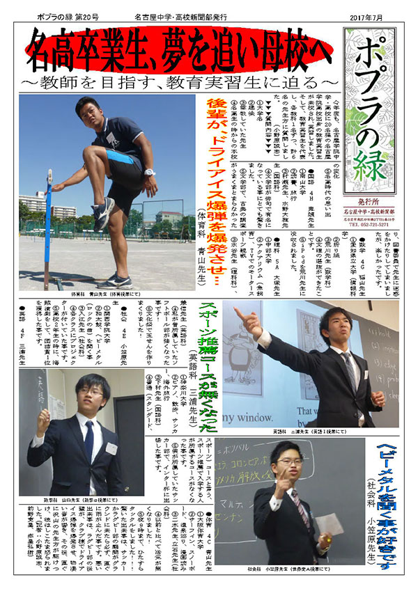 ポプラの緑 第20号 新聞部 名古屋中学・高校新聞部発行 投稿日: 2017-07-21 (2023-08-07) 投稿者: %s meigaku カテゴリー: 部活動 2018年度 専任職員公募のお知らせ 2017 私立中学フェアへの来場ありがとうございました