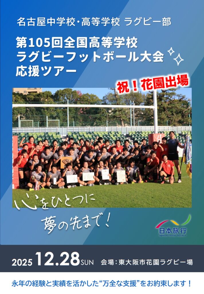 さて、本校ラグビー部は第105回全国高等学校ラグビーフットボール大会に愛知県第2地区代表として初出場いたします。