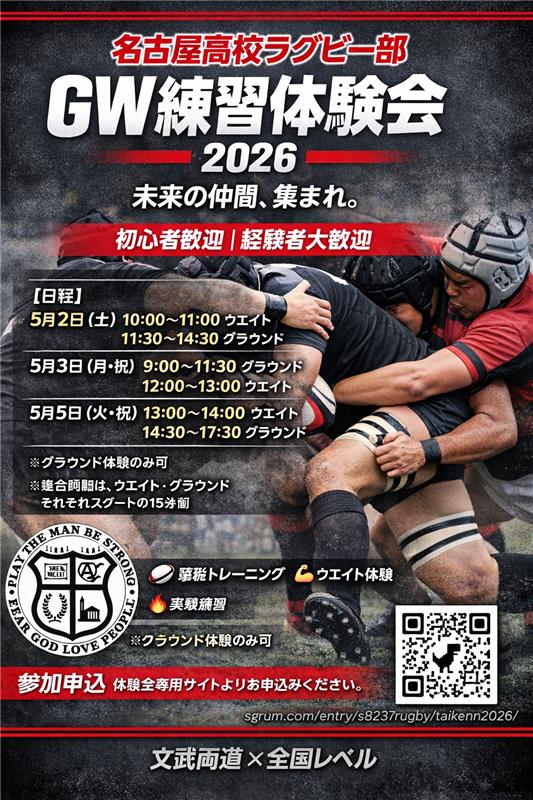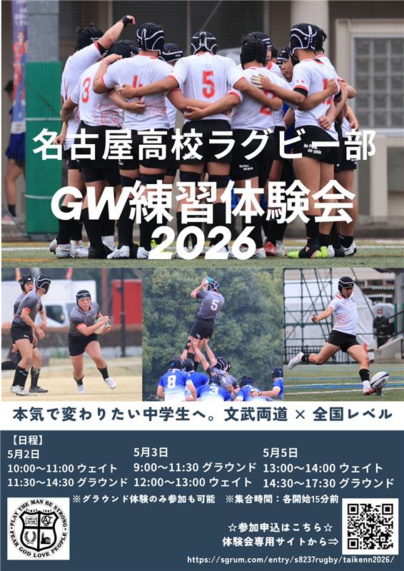 名古屋高校ラグビー部GW練習体験会2026 開催のお知らせ